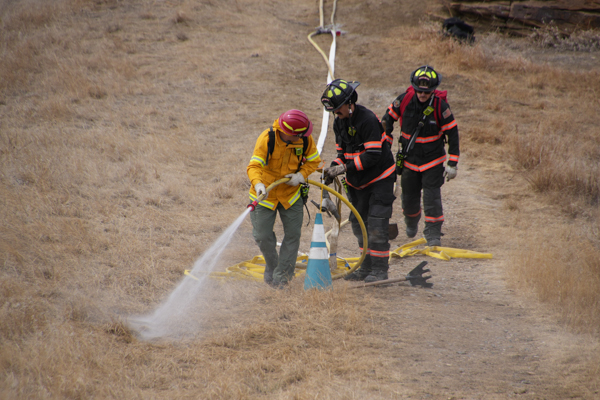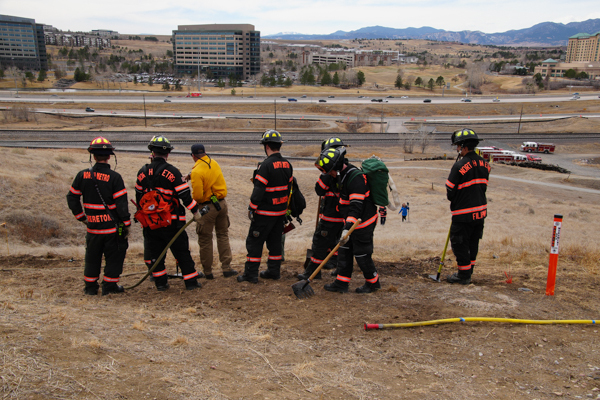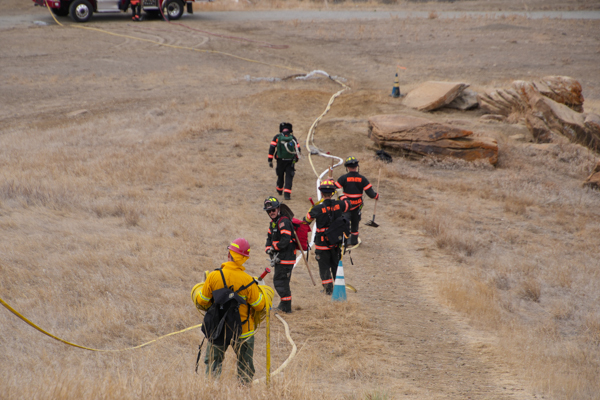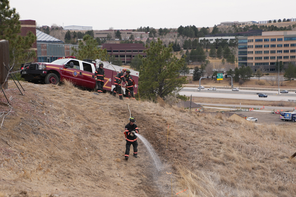 On March 12th, 2026 North Metro Fire Rescue District held one of a weeklong wildfire training in west Broomfield on the property north of Hwy. 36. Crew trained with advancing a attack line and extending it off of Brush Engine 65 and utilize Brush 67 moving up the hill to advance their attack line with the crew for structural protection.