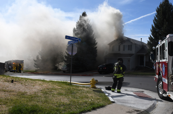 On April 20th, 2026 at 09:10 South Metro Fire Rescue and Aurora Fire Rescue responded to a reported residential structure fire in the 19700 block of E. Radcliff Place in Arapahoe County. After receiving multiple calls and reports of a heavy smoke plume, the call was upgraded to a 2nd alarm. Engine 23 arrived on scene to find heavy smoke and fire showing from two adjacent homes. Crews were on scene several hours extinguishing the fire and mopping up hot spots. One firefighter was taken to the hospital for evaluation. No other injuries were reported and the cause of the fire is under investigation.