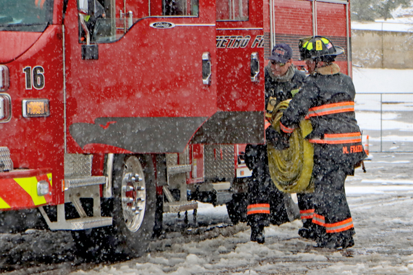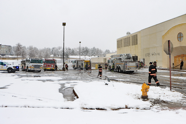 On March 6th, 2026 West Metro Fire Rescue and Denver Fire Department held a joint training at the former Sears building in the Westland Shopping Center, 10785 W. Colfax Ave. in Lakewood. Braving the snow, wind and temperatures down into the low 30’s, crews used this time to improve teamwork between the departments and to equate fire ground terminologies associated with each department. The Sears building which was used in the joint training has been vacant since 2018 and is being revitalized to improve the West Colfax corridor with a major redevelopment project.
