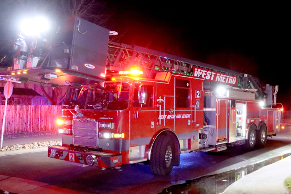 On January 14th, 2026 at 23:38 Jeffcom 911 dispatched West Metro Fire Rescue Engine 8 to a fence fire between two homes in the 2200 block of S. Hoyt Court in the Parkwest Ridge neighborhood. Engine 8 arrived on scene to a fence on fire extending into the garage and requested a full structure fire response and pulled a 1 3/4 for fire attack and search with a possible occupant still inside. Medic 10 arrived and assisted with the search, Tower 10 started access to the garage and Medic 7 as medical. District 2 arrived and took over command on the Alpha side in the offensive strategy. Crews found an electrical panel sparking on the side of the home and Xcel was requested. All searched were clear and all residents of both homes were able to escape without injury. The fire was put under control after midnight and the cause is under investigation. Additional information provided by West Metro Fire Rescue