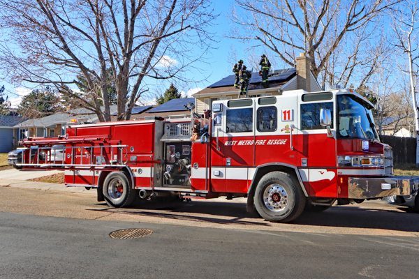 On January 5, 2026 at 10:59 West Metro Fire Rescue responded to a structure fire on the roof in the 4900 block of S. Beech St. in Jefferson County. Jeffcom 911 advised that solar panels on the roof were on fire and visible flames from the garage from the 911 caller and the home was evacuated. Engine 11 on scene to a small two-story single-family residents with nothing showing and started the investigation. Crews found a melted solar panels on the roof with no extension into the main structure and disconnected the panels and covered with tarps to stop storage of power, as to avoid further issues. The rest of the response was cancelled as the incident was put under control quickly. Additional information provided by West Metro Fire Rescue